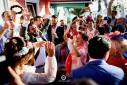 Rodeados de amigos y familiares que se emocionaron y los emocionaron a ellos, ¿qué más se puede pedir? No faltaron ni siquiera los detalles flamencos. Incluso entre los entornos más exóticos, los farolillos siempre tienen cabida, y llenaron aún más de color Sajorami Beach.